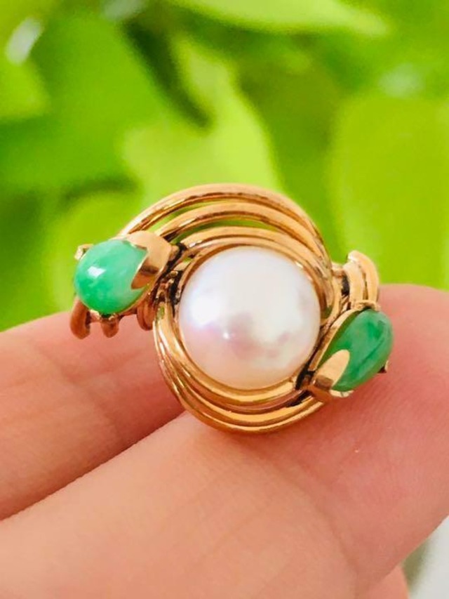 K14 翡翠 ダイヤモンド レディース リング 指輪