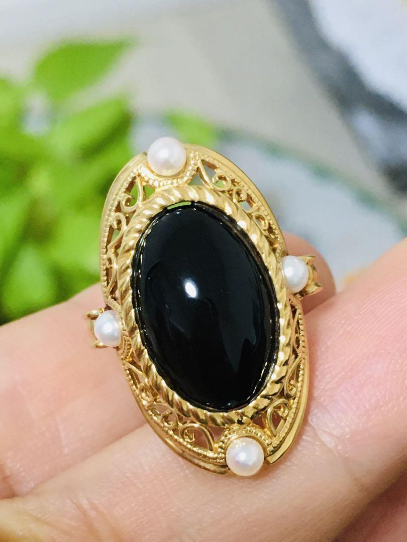K18 メノウ 真珠 リング 指輪