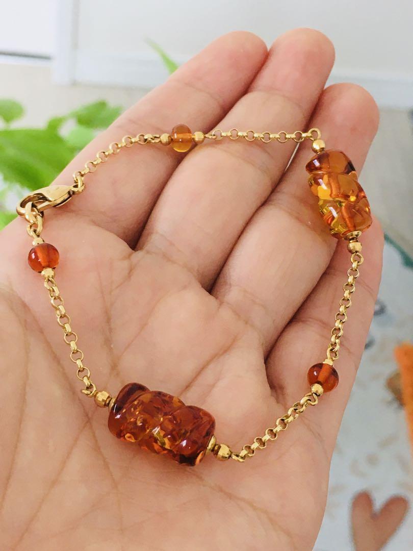 "手首を美しく飾る琥珀の魅力を感じるK18琥珀ブレスレット。サイズは21cmで、16.9x9.4mmの琥珀が輝きます。自然の美しさと洗練されたデザインが調和し、魅力を引き立てるアクセサリーです。"