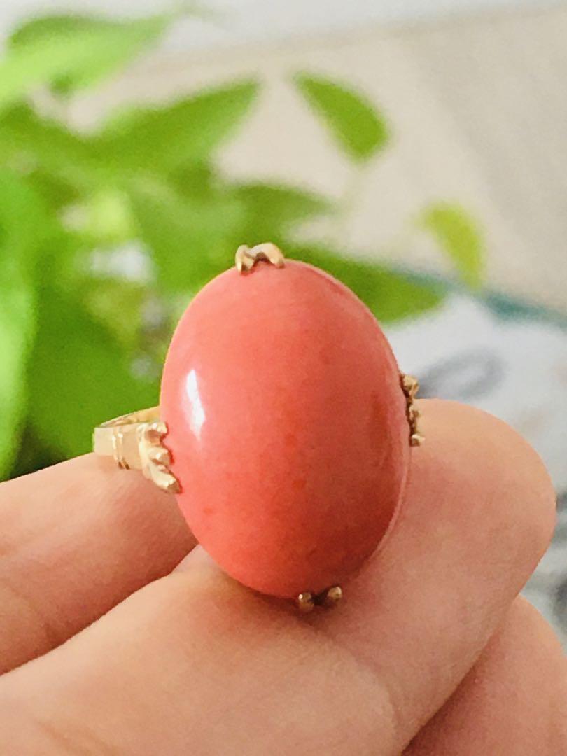 こちらは美しいK18珊瑚リングです。サイズ10号で、トップ部分は19.3x14.3mmという印象的なサイズです。洗練されたデザインと上質な素材が調和し、あなたの指元を輝かせます。自然の美しさと贅沢な輝きが絶妙に融合したこのリングは、特別な日や日常のエレガントな装いにぴったりです。