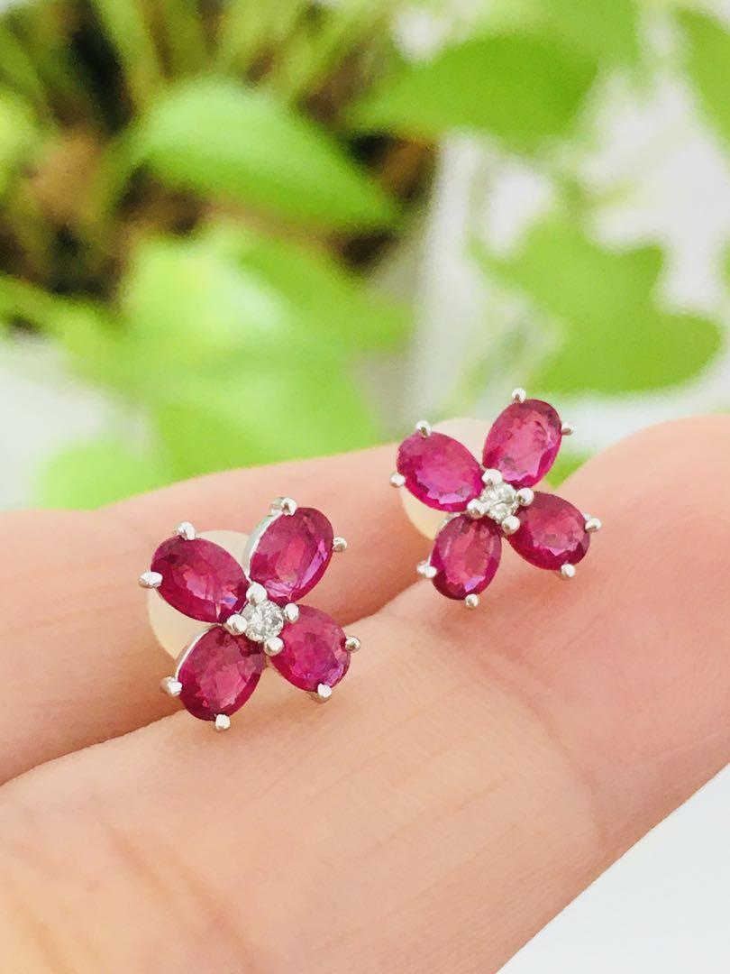 華やかなルビーと輝くダイヤモンドが調和する、K18素材の美しいピアス。1.33カラットのルビーと微細な0.02カラットのダイヤモンドが、8.5x8.5mmのサイズに華やかさを添えます。洗練された魅力が詰まった、贅沢なジュエリーです。
