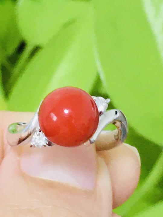 Pt900 プラチナダイヤ 珊瑚 リング 指輪