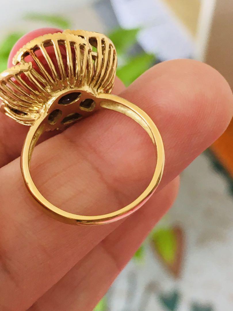 K18 珊瑚 ダイヤ リング 指輪